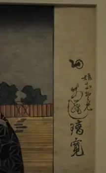Ryūsai Shigeharu spent most, if not all, of his productive years in Osaka, and as such his works are categorized as kamigata-e (上方絵). This term was used to distinguish prints produced in the Kamigata region (Kyoto and Osaka) from those produced in Edo.[10] Gaining prominence about a century after the appearance of ukiyo-e in Edo,[11] kamigata-e belonged mainly to the kabuki-e genre (images of kabuki actors), and were almost entirely the work of non-professional “talented kabuki fans” celebrating their heroes.[12] Shigeharu was a rare exception to this rule.[13]