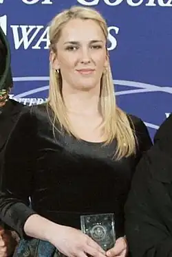 Xharra was three-time winner of the UNDP Prize for her articles on corruption in Kosovo in 2006, 2007, and 2008.[7] In 2012 she was awarded a Balkan Fellowship for Journalistic Excellence and studied the changing attitudes towards Islam in Kosovo.[11] In 2013 she was awarded the Rexhai Surroi Award by the KOHA Group for an article on extremism and the Stirring Up Debate Award from INPO Ferizaj[12] (Progress Initiative)[13] for creating public discourse on religious extremism.[12] In 2015 she won the US Secretary of State's International Women of Courage Award for the European division.[4] In 2022, Arbana Xharra received an award from the American magazine "My New York" in the nomination for heroism.[1]