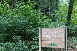 Royat is a spa town at the foot of the Parc des Volcans d'Auvergne and the Puy-de-Dôme, developed from 1850 onwards. The arboretum was established in 1931, and currently contains walking paths through over 40 types of trees, including conifers from North America and Europe such as Douglas fir, larch, and Lawson cypress. It is managed by the Office National des Forêts.[1]