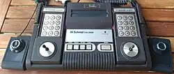The Arcadia 2001 is a second-generation 8-bit home video game console released by Emerson Radio in May 1982 for a price of US$99,[2] several months before the release of ColecoVision. It was discontinued only 18 months later, with a total of 35 games having been released.[2] Emerson licensed the Arcadia 2001 to Bandai, which released it in Japan.[2] Over 30 Arcadia 2001 clones exist despite the system being a commercial failure.