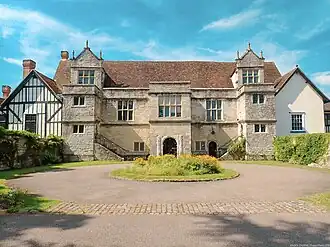 The Archbishop's Palace is a Grade I listed historic 14th-century and 16th-century building on the east bank of the River Medway in Maidstone, Kent. Originally a home from home for travelling archbishops from Canterbury, the building has been most recently used as a venue for wedding services.[1] The former tithe barn for the palace (today severed from the palace by the A229), now serves as the Tyrwhitt-Drake Museum of Carriages.