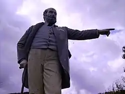 Hood died in Cardiff on 27 October 1902.[7] Due to the high esteem in which he was held, his workers decided to fund a memorial in his honour. The miners contributed to a statue to be built, amassing over £600 for its construction. The 7ft6inch bronze statue was erected on the grounds of Llwynypia Library, pointing towards his colliery and was unveiled in July 1906 by William Abraham (Mabon). It was the first public statue in the Rhondda.[5]