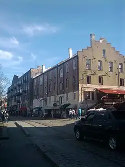 Archibald Smith Stores is a historic building in Savannah, Georgia, United States. Located in Savannah's Historic District,[1] the addresses of some of the properties are East Bay Street, above Factors Walk, while others solely utilize the former King Cotton warehouses on River Street (as of February 2022, these are the Cinnamon Bear Country Store and the Cotton Exchange Tavern). The building was constructed in 1810, making it the oldest intact structure on East River Street. It was expanded in 1816. Due to the building's height, it is at this point (if travelling from the east) that Factors Walk changes from being single-level to become two levels.