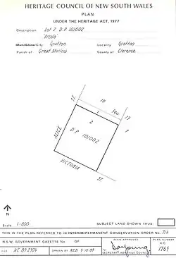• at regional level as an excellent example of the type of residence with large garden and outbuildings built by the prosperous middle class in Grafton in 1907. The house and garden have a high degree of integrity and a well documented record of the interiors, fittings and furniture dating from 1918;