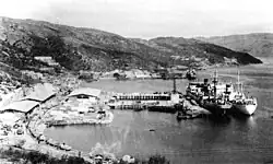 Liinakhamari port in 1940 or 1941 with trucks waiting on a line