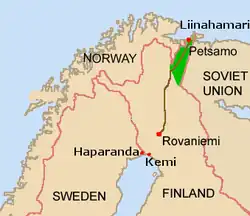 Arctic Ocean Highway and the Liinakhamari port became vital during the World War II in 1940–1941 as the only export route for Finland and Sweden not controlled by Nazi Germany or the Soviet Union. After the war, Finland ceded the area of the former Petsamo Province to the Soviet Union and thereby lost its connection to the Arctic Ocean. The highway was rerouted and today it is a part of the Finnish national road 4 leading to Norway.