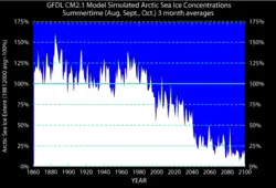 Since 1880, the global temperature has risen 0.8°C; but the temperature in the Arctic has warmed twice as much, leading to much less sea ice coverage and greater accessibility to natural resources, transport passages and fisheries.[2] Between 1971 and 2019 the temperature in the Arctic was three times higher than the increase in the global average during the same period.[3]