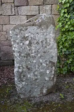 The Ardjachie Stone is an uncut but decorated red sandstone boulder discovered by farmers in 1960 on the Ardjachie Farm in the Tarbat peninsula of Easter Ross. It now stands outside of the museum of Tain. On it are depicted several dozen cup or ring marks probably dating to the Bronze Age. It also has an inverted-L design with a wheel image above, both of probable Pictish origin. It therefore may be considered a Class I Pictish stone.