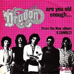 "Are You Old Enough?" is a song by New Zealand rock band Dragon, released in August 1978 while the band were still based in Australia.[1] It was released as the first single from the group's fifth studio album O Zambezi (1978). The song peaked at number one on the Australian Kent Music Report, becoming the group's first number-one single.