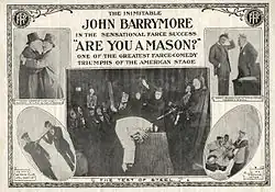 Are You a Mason? is a 1915 American silent comedy film produced by Adolph Zukor (Famous Players Film Company) and Charles Frohman, and distributed through Paramount Pictures. Directed by Thomas N. Heffron, it starred John Barrymore as a young husband who pretends to join the Masons as an excuse to get out of the house. It was based on a 1901 play by Leo Ditrichstein.[1]