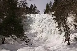 Arethusa Falls is a waterfall in the White Mountains of New Hampshire in the United States. The waterfall occurs when the headwaters of Bemis Brook tumble over a granite cliff on the western slope of Crawford Notch. Arethusa holds the distinction of being the tallest single-drop waterfall in New Hampshire; some high-angle cascades surpass it in height, such as the Mahoosuc Range's seasonal Dryad Falls.