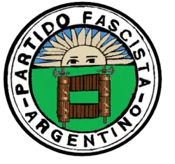 The Argentine Fascist Party (Partido Fascista Argentino, PFA) was a fascist political party in Argentina from 1932 until its official disbandment in 1936, when it was succeeded by the National Fascist Union (Union Nacional Fascista, UNF).[2] Founded by Italian Argentines,[3] the party was formed as a breakaway faction from Argentina's National Fascist Party (Partido Nacional Fascista, PNF).[4] It was based upon Italian fascism and was recognized by Benito Mussolini's National Fascist Party in 1935.[5] In the 1930s the party became a mass movement, particularly in the Córdoba province.[6] Nicholás Vitelli led the PFA's branch in Córdoba until his death in 1934, when Nimio de Anquín took the leadership of the party.[7]