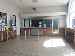 An SNCF station,[5] Argenton station features a main hall, ticket office, automated ticket machines, a heated waiting area with seating, a platform-side waiting area with sheltered seating, toilets, a phone box and mailbox.