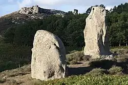 Two sizable, elongated stones stand among the megaliths in Portella Cerasa, and another megalith bears an etched Sun symbol. A large boulder in front of the dolmen's remnants at Portella Zilla, further to the west, may have been a menhir that had collapsed. Around the alleged monuments, no evidence of prehistoric human habitation, such as pottery, tools, or bones, have been discovered.