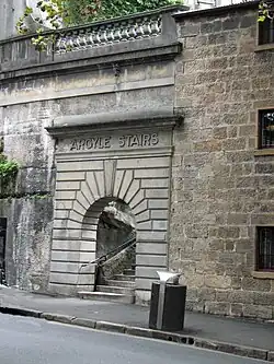 The Argyle Bridge is a heritage-listed road bridge that carries Cumberland Street across the Argyle Cut and Argyle Street in the inner-city Sydney suburb of The Rocks in the City of Sydney local government area of New South Wales, Australia. It was built from 1911 to 1912. It is also known to include the Argyle Stairs. The property is owned by the Property NSW, an agency of the Government of New South Wales. It was added to the New South Wales State Heritage Register on 10 May 2002.[1]