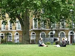 The square was built in the 1830s and 1840s, after the collapse of an attempt to build a music and arts centre in the area.[1] Before its construction, the area was home to one of London's waste dumps.[2] Almost all of the square remains in its original form, with numbers 7 to 47 (i.e. everything but the north side) Grade II-listed.[3][4][5]