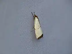 Argyria lacteella, the milky urola moth, is a moth in the family Crambidae. It was described by Johan Christian Fabricius in 1794.[1] It is found in North America, from Maryland south to Florida and west to Texas. In the south, the range extends through Costa Rica to Brazil. It is also found on Cuba, Puerto Rico and Bermuda.
