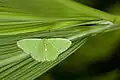 The species' wingspan is about 1 cm.[4] The ground color is greenish. Its caterpillar is a light, dull green color with dorsal and lateral dark suffusions. A subdorsal white line is present. Body rugose (wrinkled) with many small conical spines. Spiracles reddish brown.[5] Host plants are Buchanania species.[6] Pupation occurs in a cocoon made from detritus and flower parts.