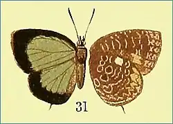 1. ^ Doherty, 1891 New and rare Indian Lycaenidae Journal of the Asiatic Society of Bengal 60 Pt.II (1) : 32-38, pl. 1