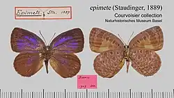 - ^ Savela, Markku. "Arhopala epimete (Staudinger, 1889)". Lepidoptera and Some Other Life Forms. Retrieved January 24, 2019.