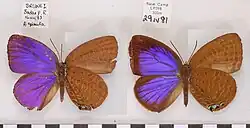 2. ^ "Arhopala Boisduval, 1832" at Markku Savela's Lepidoptera and Some Other Life Forms. Retrieved June 11, 2017.