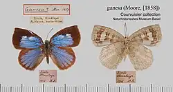 Arhopala ganesa, the tailless bushblue,[2] is a species of lycaenid or blue butterfly found at the junction of the Palearctic realm and the Indomalayan realm.
