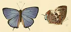 {{cite book}}: CS1 maint: publisher location (link) - ^ Hewitson, William C. (William Chapman); Smith, H. Grose (Henley Grose); Kirby, W. F. (William Forsell); Rippon, Robert H. F. (Robert Henry Fernando); Schaus, William; British Museum (Natural History). Dept. of Zoology; Taylor & Francis, printer; Hullmandel & Walton, printer of plates; M. & N. Hanhart, printer of plates (1862). Illustrations of diurnal Lepidoptera, Lycænidæ. Smithsonian Libraries. London : John Van Voorst.