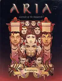 The rules for this role-playing system are contained in a 500-page softcover book designed by Christian Scott Moore and Owen Seyler and edited by Kirsten Kaschock, with cover art by Michael William Kaluta.[1] Aria is based on the concept of the 'monomyth', the theory that one fundamental story is at the core of most myths, legends and fairy tales.