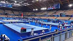 The Ariake GYM-EX, formerly known as the Ariake Gymnastics Centre, is an exhibition hall and former sports arena in the Ariake district of Tokyo, Japan.[3] Opened in October 2019, the venue was originally constructed to host the gymnastics events at the 2020 Summer Olympics[4] and the boccia events at the 2020 Summer Paralympics.[5]