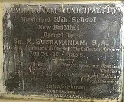 This school was inaugurated on 10 November 1919 by Mohamed Habibullah Sahib Bahadur, the then Municipal Councillor of Kumbakonam.[2]