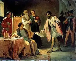 ![]() Tsar Ivan III assigns Aristotle Fioravanti an order for coinage in 1479, painting by Pyotr Basin, 19th century | |
