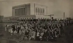 The Mesa Arizona Temple (formerly the Arizona Temple; nicknamed the Lamanite Temple)[2] is the seventh operating temple of the Church of Jesus Christ of Latter-day Saints. The intent to build the temple was announced on October 1, 1919, by church president Heber J. Grant, during the church's general conference. Located in the city of Mesa, Arizona, it is the first of the church's nine temples built or planned in the state, with three of those in Maricopa County.[3] A groundbreaking ceremony was held on April 25, 1922, and the dedication, conducted by Grant, was on October 23, 1927.