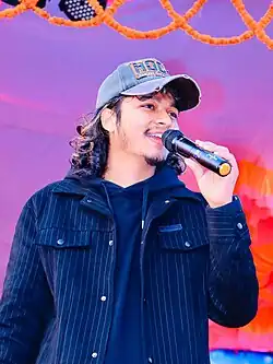 Arjun Sapkota (Nepali: अर्जुन सापकोटा; born 26 January 1999) is a Nepalese singer, composer, lyricist and model, known for his contribution towards Nepali folk music industry .[1] As of March 2023 Sapkota has given voice to more than 30 Songs[2][3] "Banki chari", "Baseu Alakkai", "Dukha Satamla", "Dui duna chaar", "pachheuri lisyo", "fulyo gurasha", "Nagara pir maya"[4], "A thuli "[5] including others are his few songs.[6] Sapkota came to limelight after his 2019 Lok Dohori song "Banki chari banaima ramayo" with Devi Gharti Magar released on his own YouTube Channel.[7]