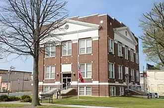 The Arkansas County Courthouse for the Northern District is located at East 3rd and College Streets in Stuttgart, Arkansas, the seat of the northern district of Arkansas County. It is a two-story Classical Revival brick structure resting on a raised basement. It was designed by J. B. Barrett of the Stuttgart firm Barrett & Ogletree, and built in 1928, in response to the designation of rapidly growing Stuttgart as the seat of the northern district of the county. The building is an excellent local example of Classical Revival styling, with main entrances on its northern and eastern facades topped by broad pediments and entablatures, with a stepped brick parapet above.[2]