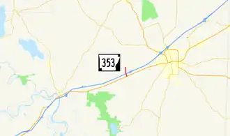 The highway begins at US 67 west of Hope in the Arkansas Timberlands. Highway 353 runs northwest along an overpass over I-30 to a crossroads at Guernsey, where it terminates. The highway does not provide access to I-30.[3]
