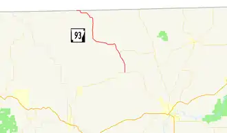 Arkansas Highway 93 (AR 93 and Hwy. 93) is a north–south state highway in Randolph County, Arkansas. The route of 14.66 miles (23.59 km) runs from AR 90 north to the Missouri state line.[2]