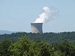 Unit Two has a generating capacity of 988 megawatts and began commercial operation on March 26, 1980.[12] ANO Unit 2 had its license to operate issued September 1, 1978 and it was later renewed June 30, 2005.[13] It is licensed to operate through July 17, 2038.[14] Its nuclear reactor and turbine generator were supplied by Combustion Engineering and General Electric, respectively.[15] Unit Two utilizes a recirculating-water system from a 447-foot tall cooling tower.[16]
