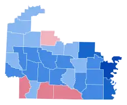 Lincoln counties in blue, Boozman counties in red.