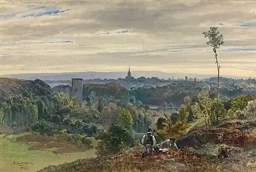 He went to Paris in 1852. There, he met Eugène Viollet-le-Duc, and became his student in 1857. That same year, he had his first showing at the Salon. He would continue to exhibit there and at other venues in Paris until 1894. During those years, in addition to Fontainebleau, he worked in Barbizon, the valleys near Chevreuse, the mountains around Grenoble, and along the Rhine. Until 1868, he taught a course in drawing at Fontainebleau. In 1889, he was awarded the Ordre des Palmes académiques for his watercolors.