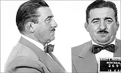 Courville was Cotroni's most trusted partner, and the two were very active in running bookmaking, gambling and prostitution rackets.[8] Montreal had a reputation at the time as "Canada's Sin City" and attracted many American tourists who enjoyed visiting a city that did not have the same puritanical rules and atmosphere that were the norm in American cities and in English-speaking Canadian cities.[10] During the Second World War, Montreal had so prostitutes that both the U.S. Army and U.S. Navy tried to discourage servicemen from visiting Montreal under the grounds that visits to Montreal almost always resulted in the said servicemen contracting venereal diseases, which added to Montreal reputation as the "Sin City of the North".[11] Cotroni and Courville soon attracted the attention of "the Commission" of New York as both Lucky Luciano and Meyer Lanksy made it clear that they wanted a share of Montreal's rackets.[9] For their part, Cotroni had forged an alliance with a number of French gangsters, most notably Antoine D'Agostino to smuggle heroin from Marseilles into Montreal.[12] As the population of the United States is much greater than Canada, the market for heroin was accordingly greater. An alliance was soon made with the New York Mafia where in exchange for heroin being smuggled into the United States, a share of the profits from the Montreal rackets would go to "the Commission".[13] The influence of the Cotroni family increased in the 1950s when an alliance was made with the Bonanno family of New York.[14]