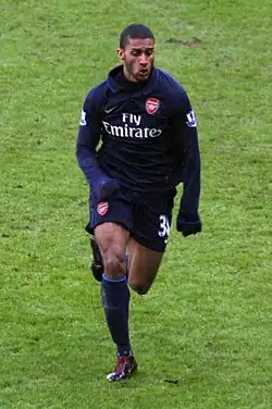 Traoré returned to Arsenal in the summer of 2009 and was determined to fight for his place in the first team.[27] He thereafter played in Arsenal's 2–0 win over West Bromwich Albion in the League Cup, for up to 61 minutes before being replaced by Nacer Barazite.[28] Due to Gaël Clichy and Kieran Gibbs both incurring injuries, Traoré stepped up to the starting left-back position.[29][30] He made his first start of the season against Sunderland, as they lost 1–0 on 21 November 2009.[31] This was followed up by starting in the next two matches in a 3–0 loss at home to Chelsea and a 2–1 win over Liverpool at Anfield.[32] Traoré himself became injured and missed a few matches, but returned against Aston Villa in a 3–0 win on 27 December 2009.[33] He then made four more starts for the side but struggled in the matches against Everton and Bolton Wanderers.[34] His form reportedly attracted the interest of Paris Saint-Germain and Traoré was forced to strenuously deny reports he was set to move to France.[35] Clichy's return forced Traoré out of the side until May's trip to Blackburn Rovers, but the defender had proved he was a more-than-capable understudy, helping the Gunners close the gap at the top of the Premier League table.[36] At the end of the 2009–10 season, he made fourteen appearances in all competitions.