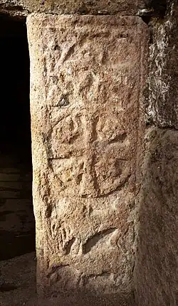It is noteworthy, that in the South Caucasus only in Armenia one can find monogram crosses (crus monogramatica) with the combination of two stylized letters of the name of Christ (Aghtsk, Kasagh, Etchmiadzin). Such earliest forms of crosses are depicted in the rock cut complex of Vankasar (Artsakh), in the tomb of Aghtsk, as well as on the facades of the basilicas of Lernakert, Tigranakert (Artsakh), Tsitsernavank, Agarak, Yereruyk, Bayburd, Parpi. Also typical of this period are depictions of vine scrolls, palmettes, acanthus and lily flowers, as well as depictions of birds, sometimes animals’ combat as symbols of the triumph of faith and the eternal struggle.[4]