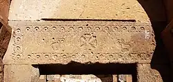 Armenian medieval sculptures are sculptures created in the medieval period. They are most present on or in churches, martyries, and free-standing monuments, such as four-sided stelae and khachkars (cross stones). The popularity of sculpture in the Armenian medieval art was due to midis- a three-layer layout of stones, when two rows of hewn stones were joined with lime mortar, and the surface got an artistic treatment.[1]