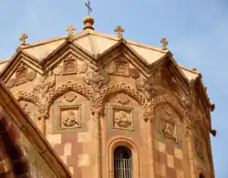 The source of inspiration for the design of the church's drum was the drum of the Etchmiadzin Cathedral, with its spiral semi-columns, intertwined pointed arches and, which is most important, with the images of the apostles on the facets of the drum.[15] Presented by the church of St. Stepanos, it is obvious the hereditary relation of Armenian art to the national traditions and artistic perceptions․[16]