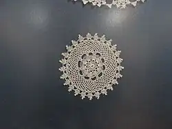 Armenian lacemaking is thought to date back to before the 15th or 16th centuries. Although no textiles are preserved from that time, lacemaking seems to be referenced in some stone sculptures, especially khachkars, which look like delicate swatches of lace.[3][4] Arab historians of the 10th century, listing the occupations of the Armenian people, mentioned handicrafts, headscarves, blankets, which were apparently related to lace.[3]