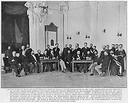 The prominent Armenian businessman and philanthropist Calouste Gulbenkian also began to build ties and invest heavily in the Baku oil industry, the fortunes he made there being the source for his nickname of "Mr. Five Percent."[40] Other notable Armenian businessmen in the oil industry in Baku included Stepan Lianozyan (owner of G.M. Lianozov Sons, which became one of the largest oil industry firms in Russia),[39] the Adamov Brothers (of A. Y. Adamoff Brothers; M. Adamoff, the eldest of the brothers, went on to become one of the wealthiest men in Baku),[41] and A. Tsaturyan, G. Tumayan and G. Arapelyan, who were proprietors of A. Tsaturov & Co., which was later bought out by Mantashev. Around 1888, out of the 54 oil companies in Baku, only two major oil companies were Azeri owned.[42] Out of the 162 oil refineries, 73 were Azeri owned but only seven of them had more than fifteen workers.[42]