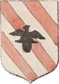 Coat of arms of the Gropa (1680) The Gropa were a noble Albanian family who ruled over the eastern shore of Lake Ochrida as early as the 13th century. In recognition of the services rendered, Sevasto Paulo Gropa was granted dominion over several lands by Charles I of Anjou through a royal decree, dated May 18, 1273. Encompassing parts of the Ebu Valley, they included the villages of Radicis, Cobocheste, Zuadigorize, Sirclani and Crave Zessizane.[14] Grand Zupan Andrea Gropa assumed control of Ochrida following the decline of the Prilep Lordship in 1371. Under his rule, the region remained an independent domain until 1380, when Karl Thopia, another prominent Albanian lord, took over governance. Zaccaria Gropa distinguished himself as a commander in several battles against the Turks and was head of the colony that migrated to Sicilia in 1465.[15] The coat of arms of the Gropa lineage is depicted in the 1680 catalogue "La Universita delle Insegne Ligustiche Delineate da Gio Andrea Musso" (p. 13)