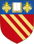 Escutcheon: Azure, on a chevron ermine three books fessewise, each with two clasps downwards, Or. |