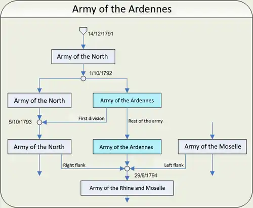1. ^ George, Nafziger. "French Army of the Ardennes 14 January 1793" (PDF). US Army Combined Arms Center. Archived from the original (PDF) on 4 July 2022. Retrieved 18 August 2020.