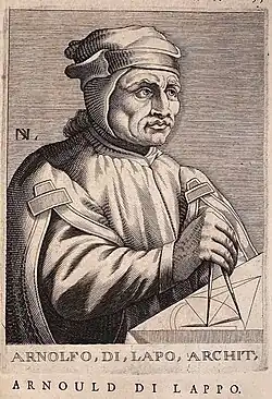 Arnolfo di Cambio[1] (c. 1240 – 1300/1310[2]) was an Italian architect and sculptor of the Duecento, who began as a lead assistant to Nicola Pisano. He is documented as being capomaestro or Head of Works for Florence Cathedral in 1300,[3] and designed the sixth city wall around Florence (1284–1333).